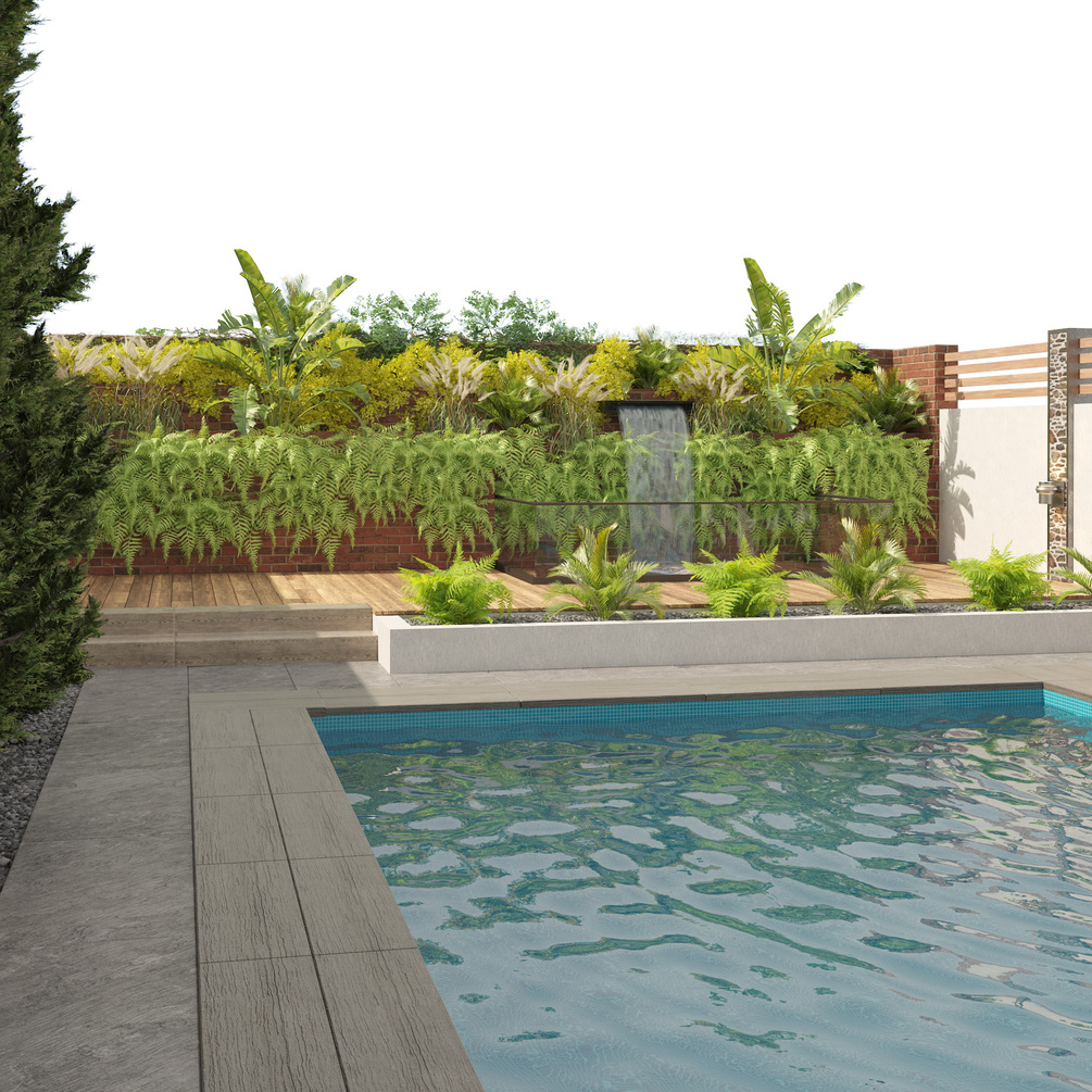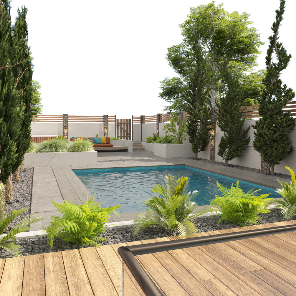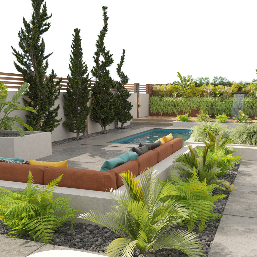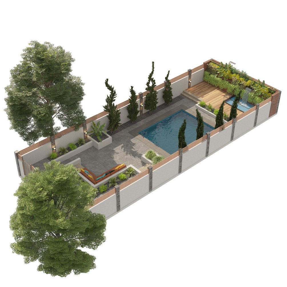 Modern backyard with pool 3d model