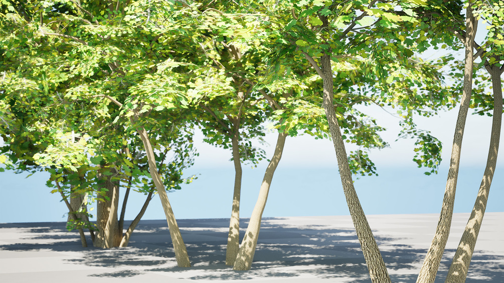 This versatile 3D model features a majestic maple tree with a detailed trunk, realistic bark texture, and lush foliage. Includes multiple versions with varying leaf densities and sizes, making it suitable for a wide range of environments. Its vibrant fall foliage and intricate branch structure create a captivating centerpiece for your landscapes.