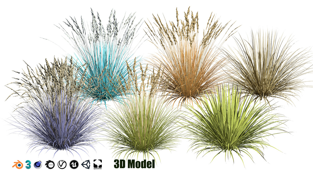 - Realistic geometry: The model accurately captures the natural form of blue fescue, with gentle curves and flowing shapes that add a touch of realism to any scene.