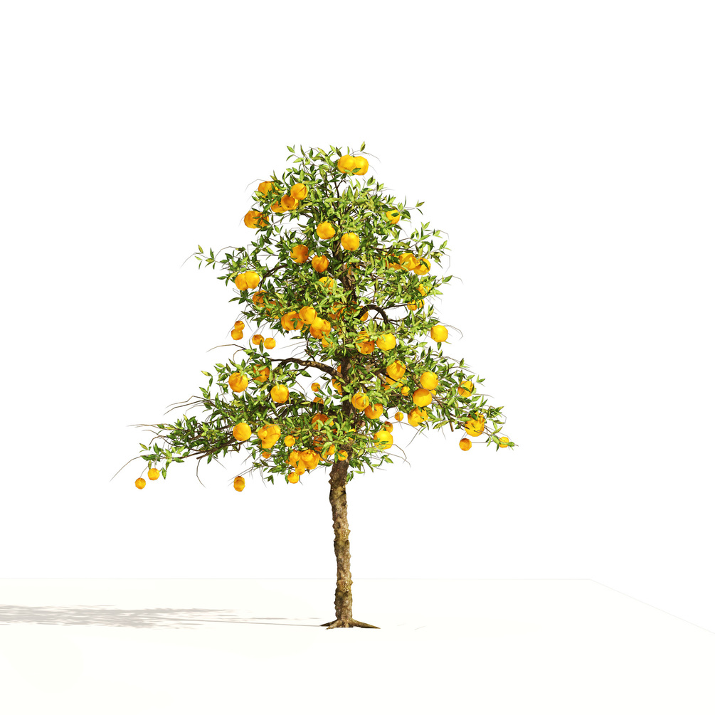 Highly detailed and highly optimized model of 3 Orange fruit trees