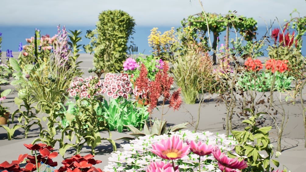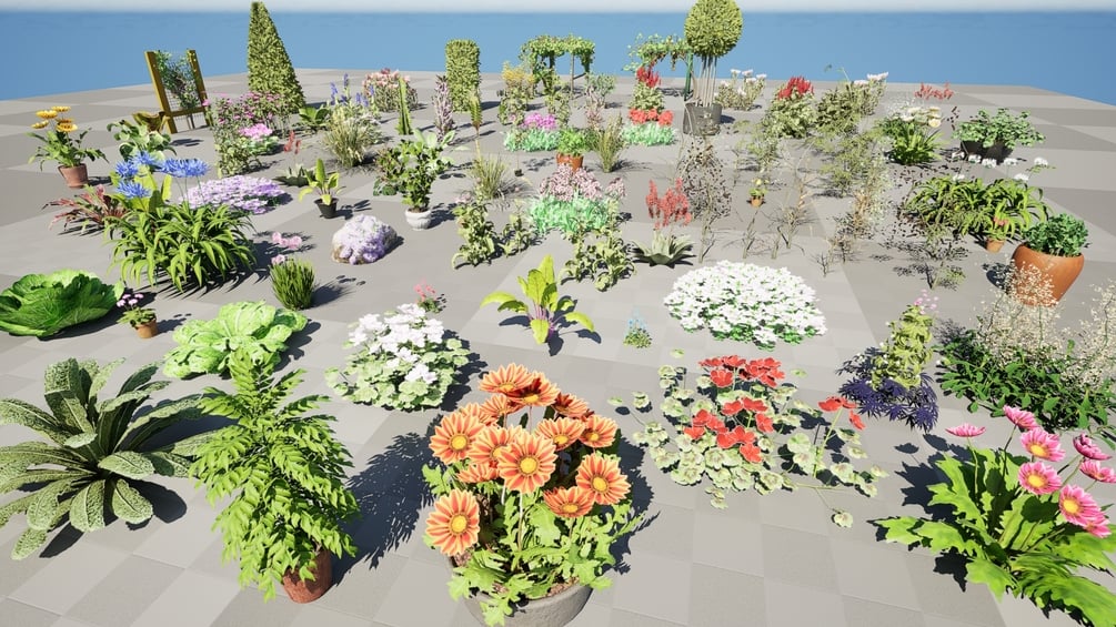 * Diverse Assets: Includes a rich selection of flowering plants, bushes, ground covers, and potted plants.