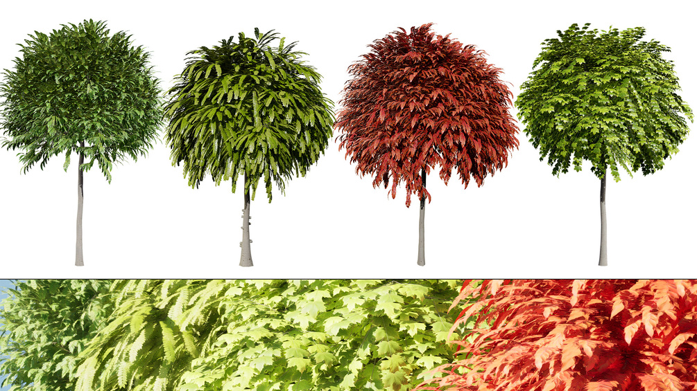 3ds max - Vray / Corona - Cinema 4D - Standard / Vray / Corona - Unreal Engine 5.3 - Unity- Blender - Collada - Maya - Speedtree - USD - obj - fbx - stl - gLB