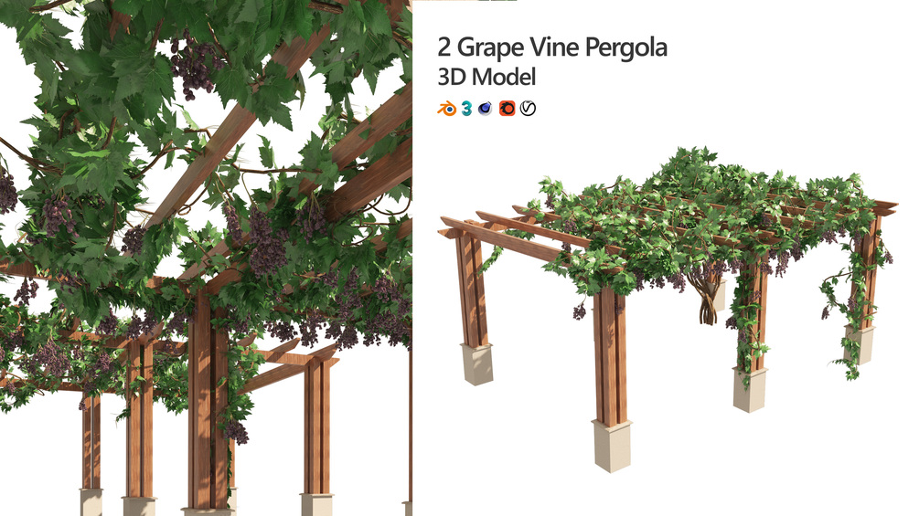 Highly detailed 3d model of 2 Grape vine pergola, A woody vine that bears grapes is an example of a grapevine.