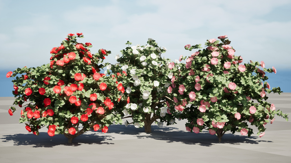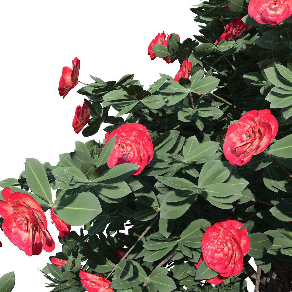 This highly detailed model captures the elegance of a mature Camellia bush, featuring: