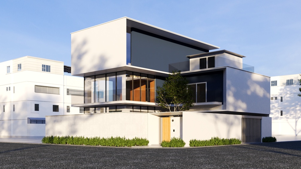 This 3D model scene features a stunning modern house with a bright and airy feel. The house is bathed in natural light from the large windows, and the clean lines and minimalist design create a sense of spaciousness. The scene is perfect for architectural visualizations, interior design projects, or as a base for creating your own unique scene.