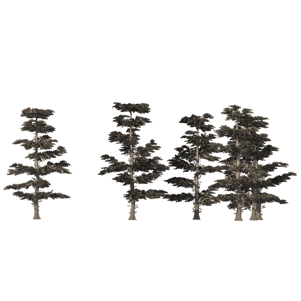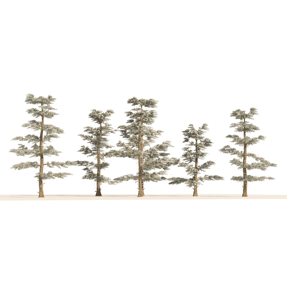 Highly detailed and highly optimized 3d model of Winter Abies concolor tree forest.