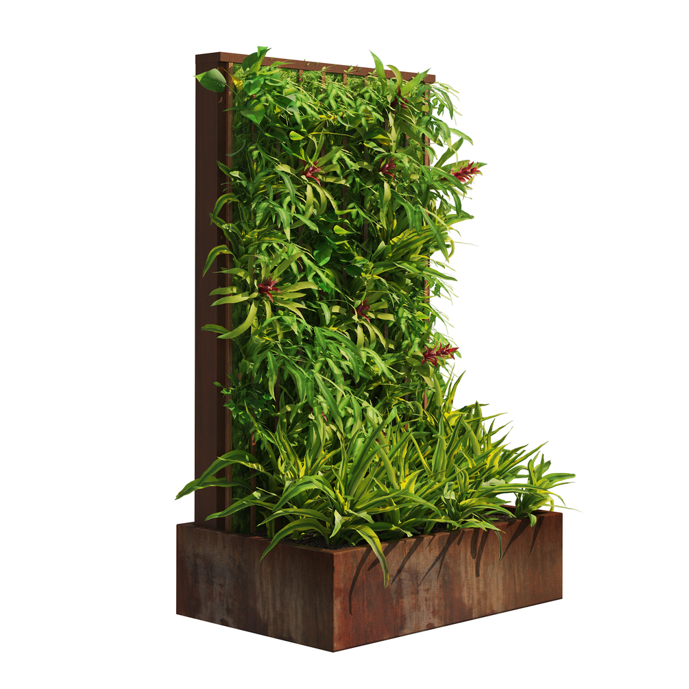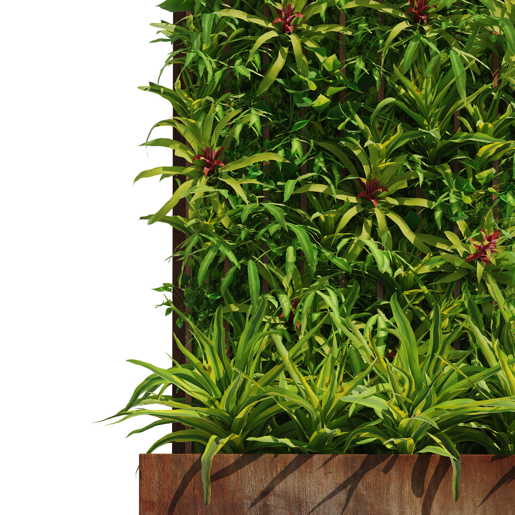 Highly detailed 3d model of outdoor greenwall with metal pot Low Poly, low poly with all textures, shaders and materials. ready to use into your scene. with corona and vray engine renderer and material.