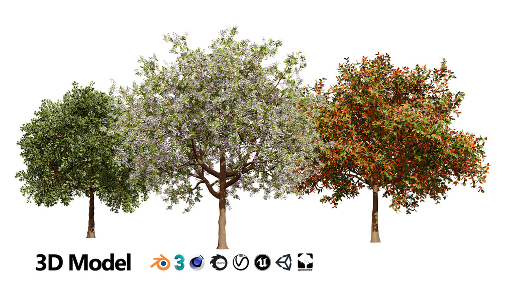 3ds max - Vray / Corona - Cinema 4D - Standard / Vray / Corona - Unreal Engine 5.3 - Unity- Blender - Collada - Maya - Speedtree - USD - obj - fbx - stl - gLB
