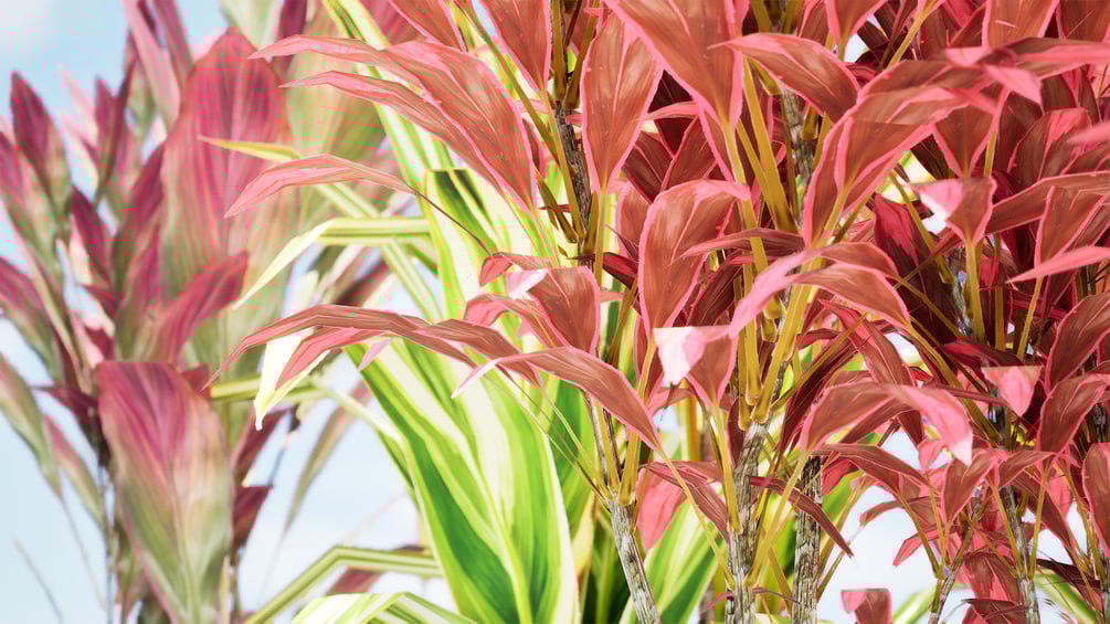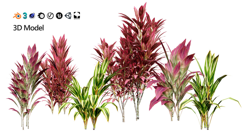 This high-quality 3D model features the iconic Hawaiian Ti plant, showcasing its lush, broadleaf foliage in a variety of vibrant red and green hues. The model is ideal for creating realistic and immersive tropical environments in your 3D projects.