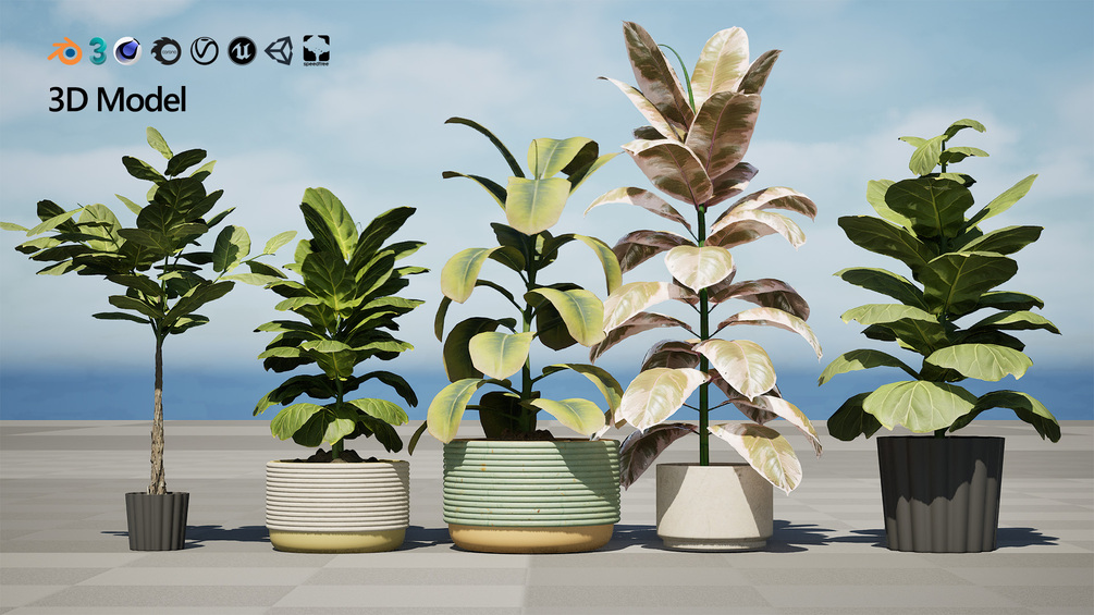 This 3D models are perfect for adding a touch of nature to your scenes, whether you're creating realistic home environments, modern offices, or stylish retail spaces. Elevate your interior design projects with this meticulously crafted collection of Fiddle Leaf Fig indoor plants