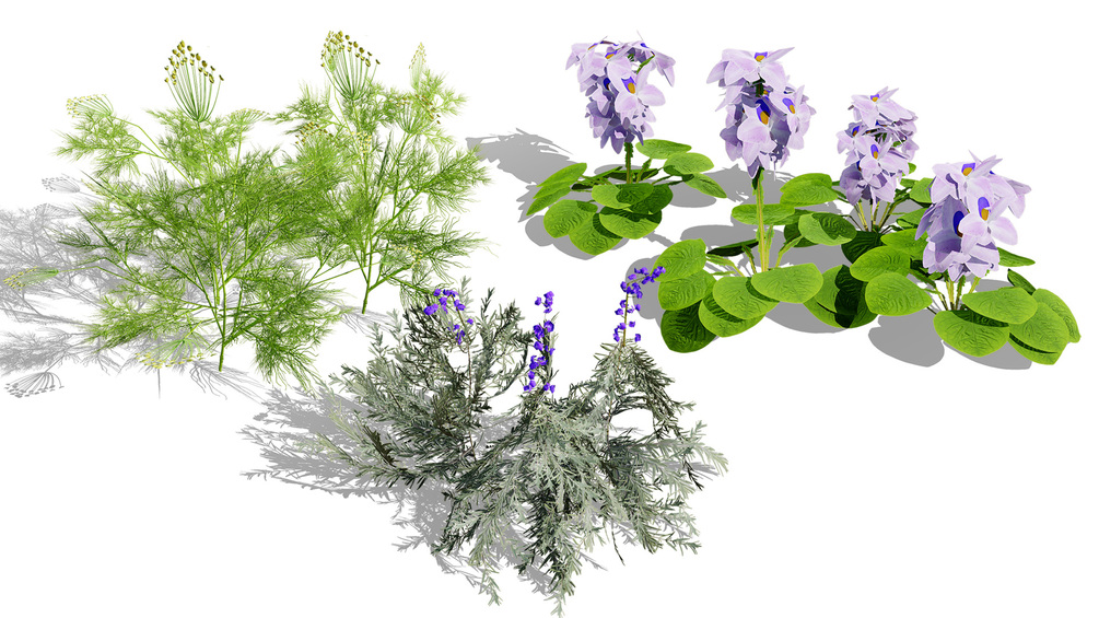 This Game-Ready Foliage Pack features three distinct, high-quality 3D plant models optimized for real-time environments: a tall flowering herb (Monkshood-like), a feathery, bright-green aromatic plant (Dill/Fennel-like), and a dense, silver-leaved shrub with purple spikes (Lavender/Russian Sage-like). Each model is texture-mapped and balanced for use in game engines and visualizations, allowing you to instantly populate your virtual landscapes with diverse, lifelike flora.