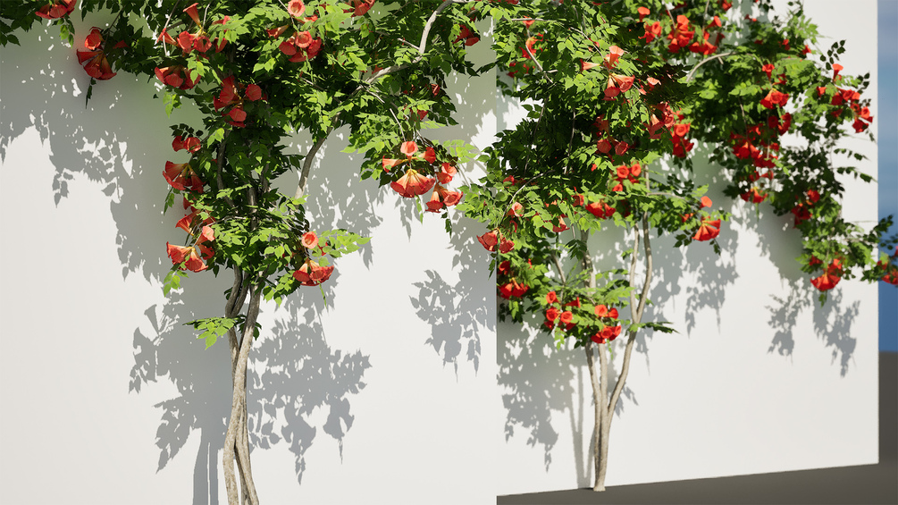 these Campsis Radicans 3D models offer the perfect way to add a touch of natural beauty and climbing charm to your digital creations.