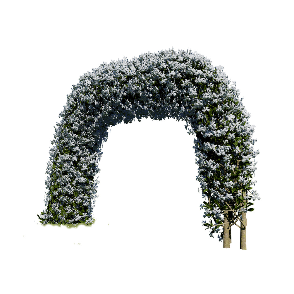 This 3D model is a beautiful and elegant archway made entirely of white crepe jasmine flowers. The archway is detailed and realistic, and would be a perfect addition to any virtual scene. It could be used in a variety of settings, such as a wedding venue, a garden, or a park.