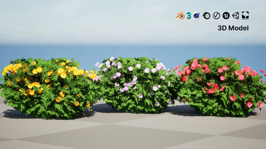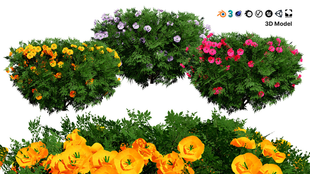 3ds max - Vray / Corona - Cinema 4D - Standard / Vray / Corona - Unreal Engine 5.3 - Unity- Blender - Collada - Maya - Speedtree - USD - obj - fbx - stl - gLB