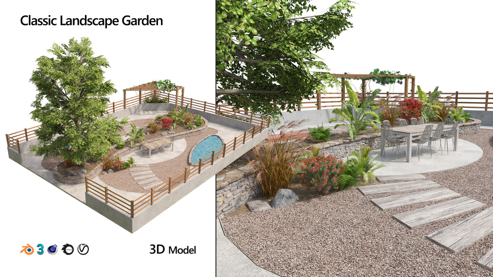 Classic garden landscape 3d model