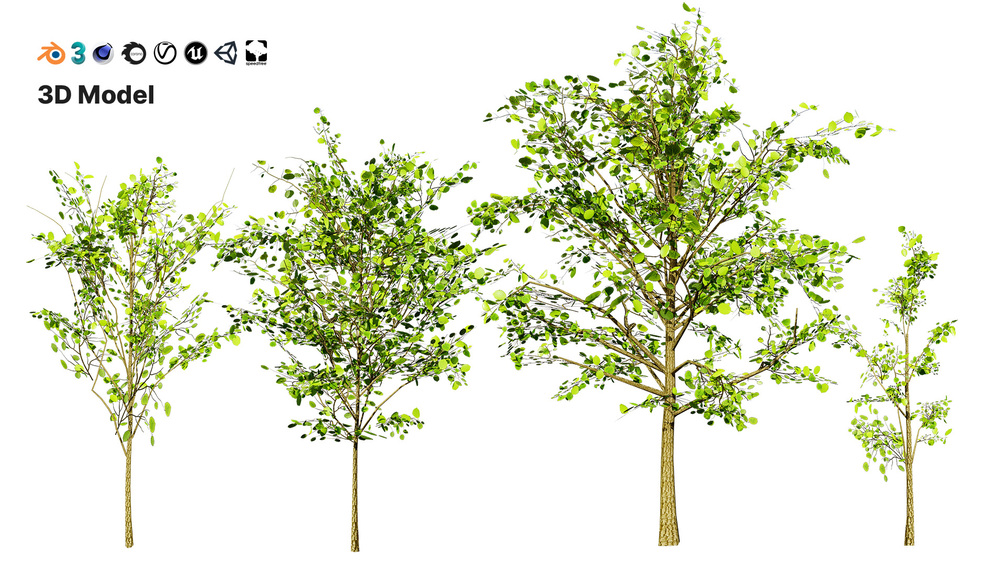 3ds max - Vray / Corona - Cinema 4D - Standard / Vray / Corona - Unreal Engine 5.3 - Unity- Blender - Collada - Maya - Speedtree - USD - obj - fbx - stl - gLB