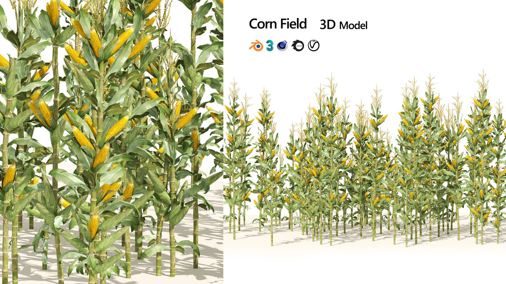 Highly detailed and highly optimized with low poly model group of corn cluster field with High-Resolution and real texture to give realistic and faster rendering. Perfect model for renders open environment, forest exterior architecture and environment visualization 3d models, summer field. Give superb look in gaming engine. tri poly and clean polygons.