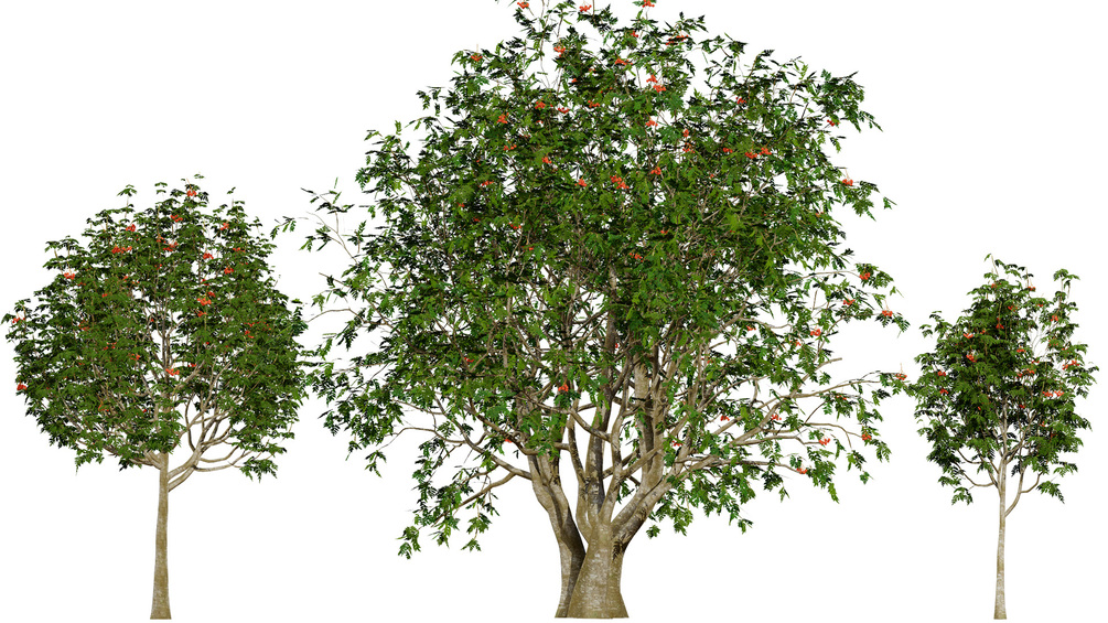 Elevate your digital landscapes with this highly detailed 3D model pack of UK Rowan trees (Sorbus aucuparia). This collection features multiple variations, capturing the graceful, slender form of this iconic species, often known as the "mountain ash." Each model is meticulously crafted to be a faithful representation, from its smooth, grey-brown bark to its characteristic pinnate leaves and vibrant clusters of red berries.