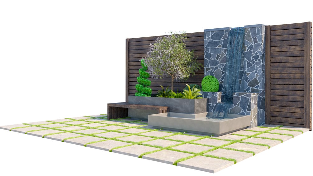 Perfect for architects, designers, and 3D artists looking to enhance outdoor scenes with a serene and premium garden setup.