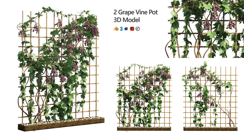 Highly detailed 3d model of 2 Grapevine, A woody vine that bears grapes is an example of a grapevine.