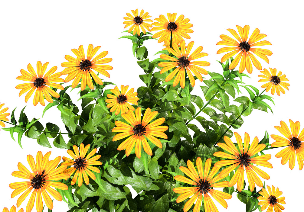 A beautiful, realistic and low poly 3D model of a variety of wildflowers, including purple and yellow coneflowers, black-eyed susans, and sunflowers. The model is highly detailed and includes textures, materials, and bump maps for added realism. It is perfect for use in architectural visualizations, animations, and other 3D projects.
