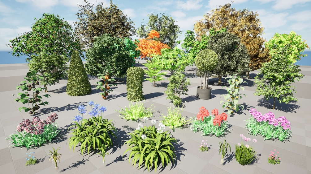 Enhance your 3D environments with this comprehensive collection of high-quality plant and tree models. This pack offers a diverse range of flora, perfect for adding realism and detail to your projects.