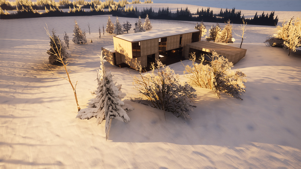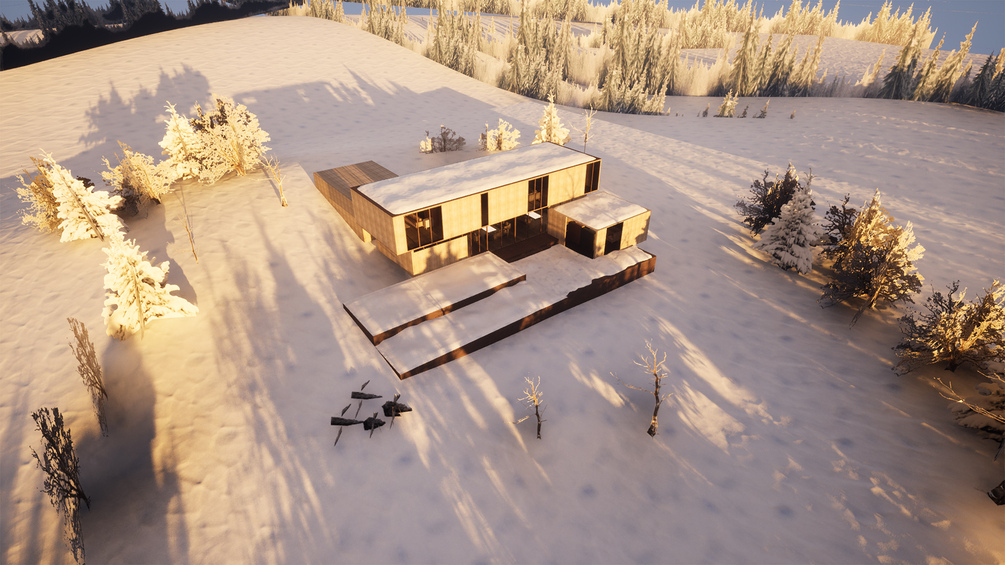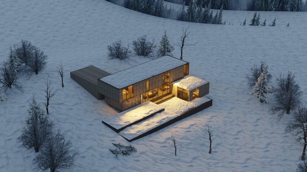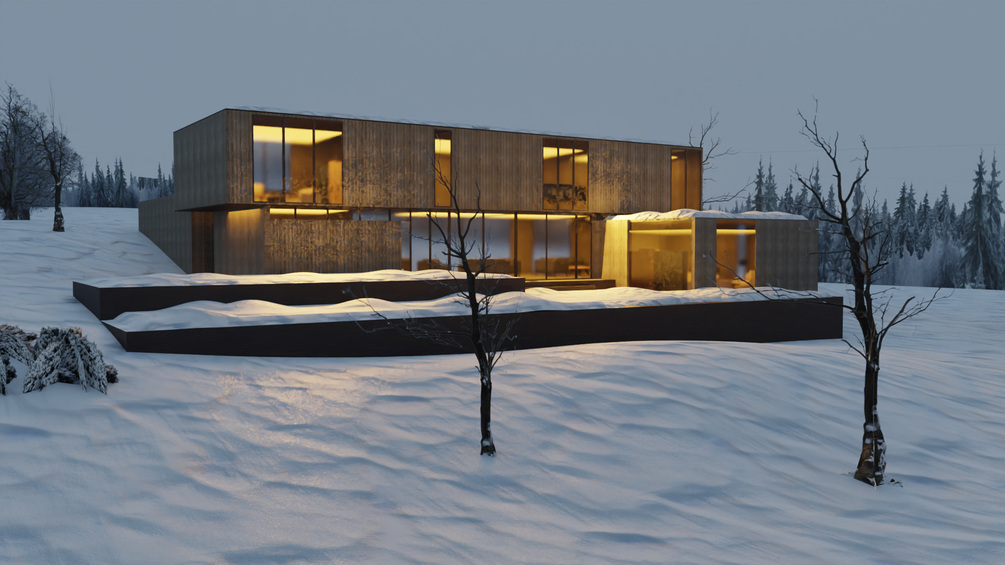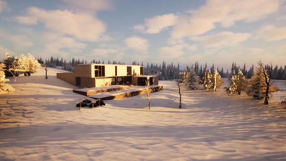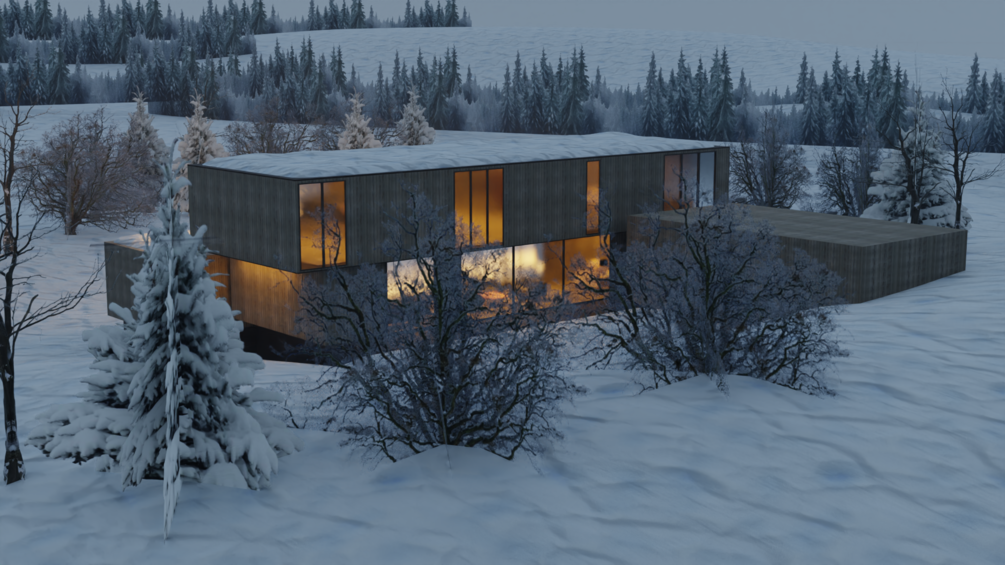 Hacker Architects House in Snowy Landscape 3D Scene