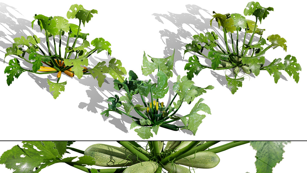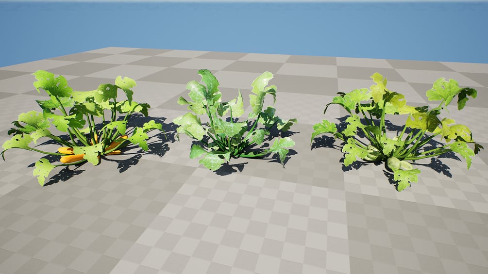 This collection captures the exotic beauty and robust growth of this unique summer squash, known for its distinctive ribbed, light-green fruit. Perfect for adding a touch of realism to market stalls, farm scenes, backyard gardens, or tropical biomes.