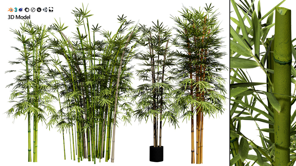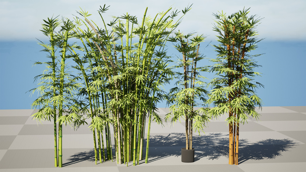 Elevate your 3D scenes with this versatile collection of high-quality bamboo plant models. Featuring a variety of species and sizes, these models are perfect for adding a touch of nature to your projects.