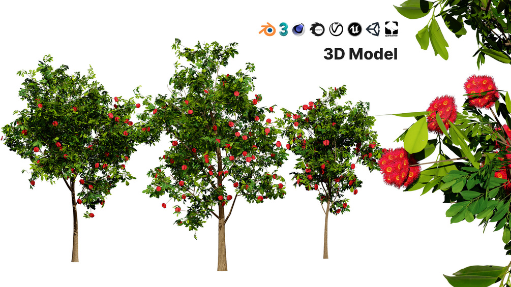 This meticulously crafted 3D model of a Corymbia Ficifolia Flowering Gum tree showcases the beauty of this iconic Australian species. Featuring a dense canopy of lush green leaves and a profusion of striking red flowers, this model is ideal for creating immersive virtual landscapes. The model is optimized for game engines and real-time rendering, ensuring smooth performance and stunning visuals.