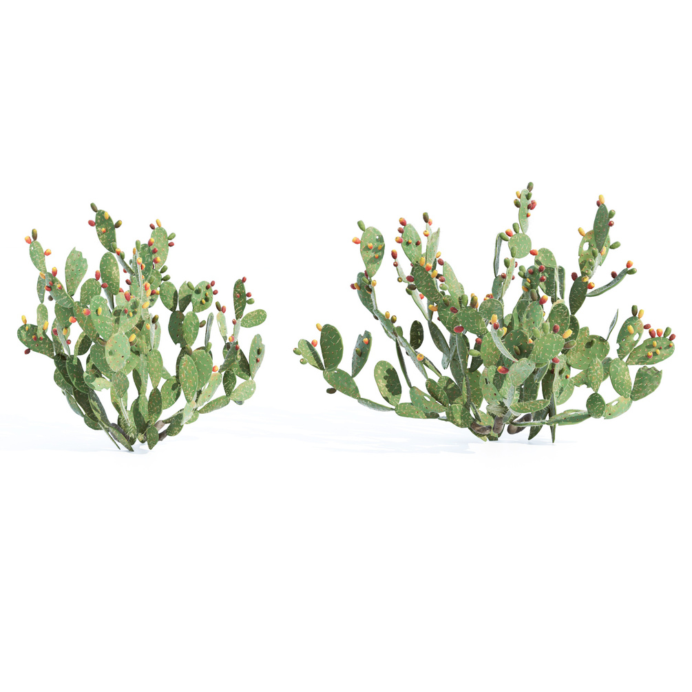 two Opuntia ficus-indica 3d model, cactus 3d model, the Indian fig opuntia, fig opuntia or prickly pear, which is a species of cactus.