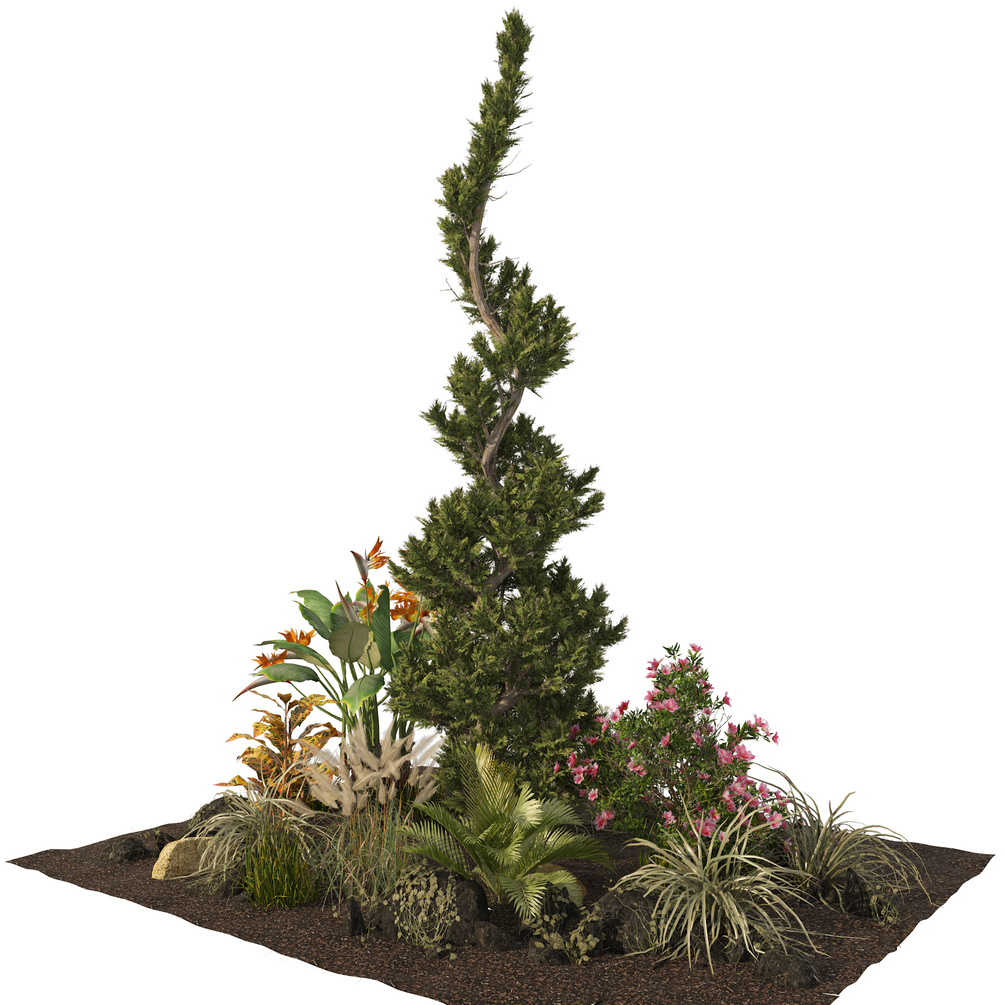 Highly detailed 3d model of outdoor garden plants collection, tree, bush and flower set with Low Poly, with all textures, shaders and materials. ready to use into your garden, yard or landscape scene. with corona and vray engine renderer and material.