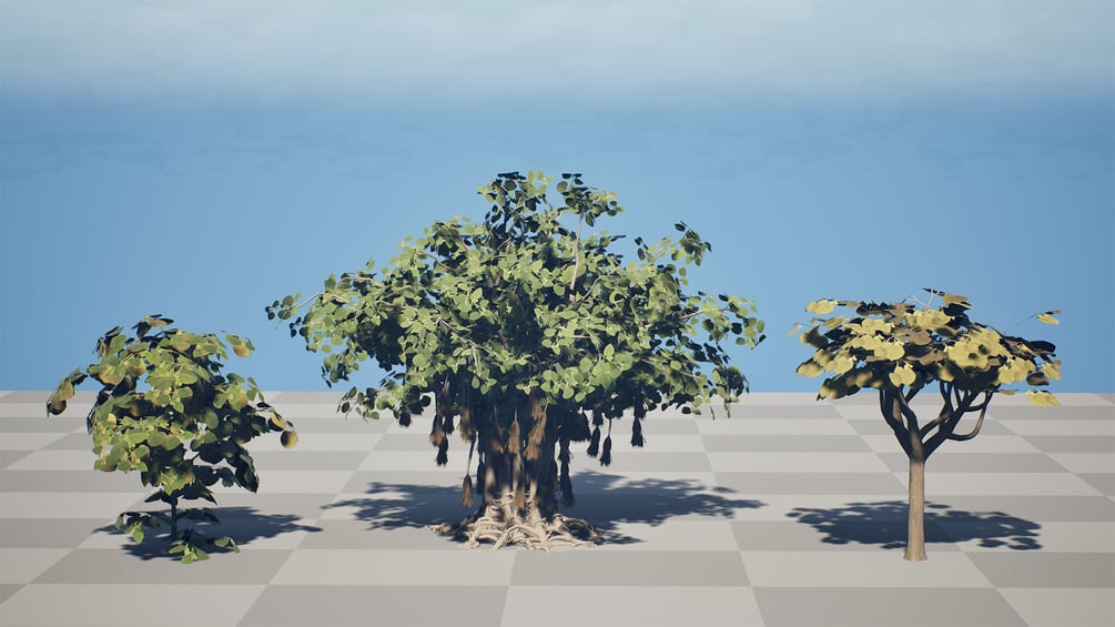This pack features the rare and majestic Arabian Socotran Fig, known for its massive, swollen trunk and intricate aerial root systems. The collection includes three distinct growth variations, allowing you to populate realistic scenes with age diversity—from a sprawling ancient giant to a young sapling.
