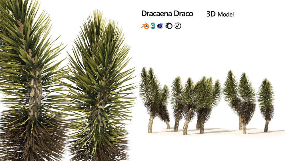 Highly detailed and optimized 3d model of Dracaena Draco trees.