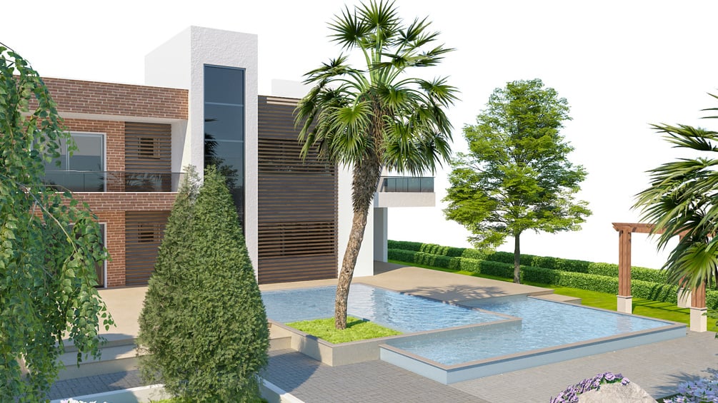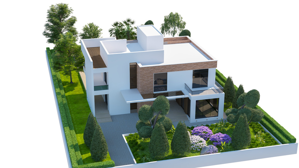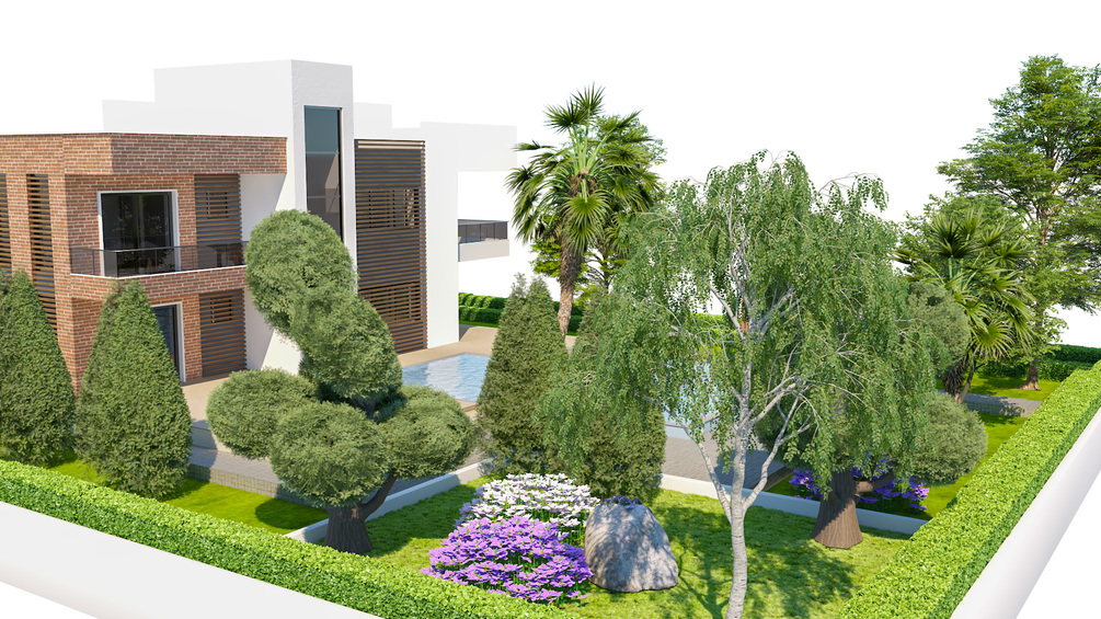 Contemporary House Exterior 3D Scene - Fully Landscaped