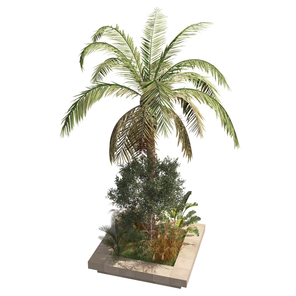 Highly detailed 3d model of landscape plants island, made with models created as a separate unit then assembled in garden island planter, which if necessary can be blocked in different garden shape or used separately.