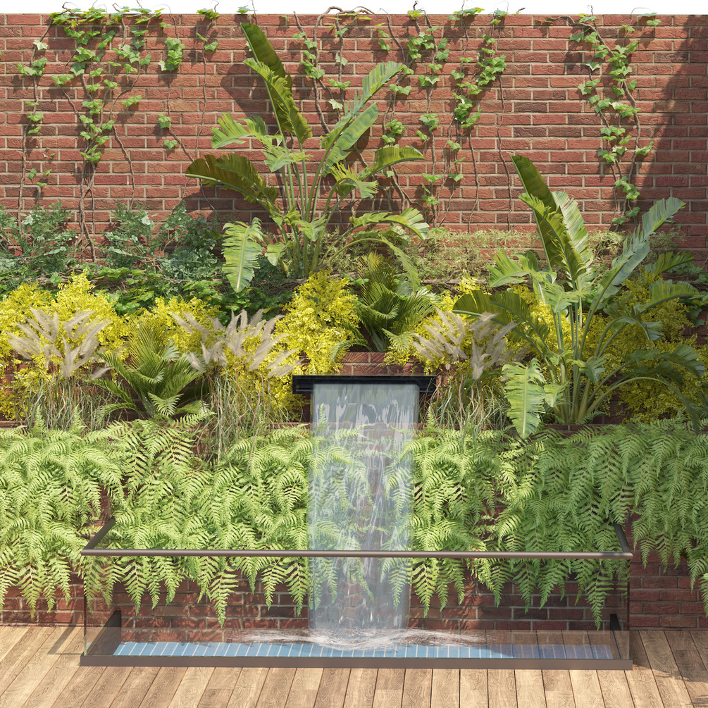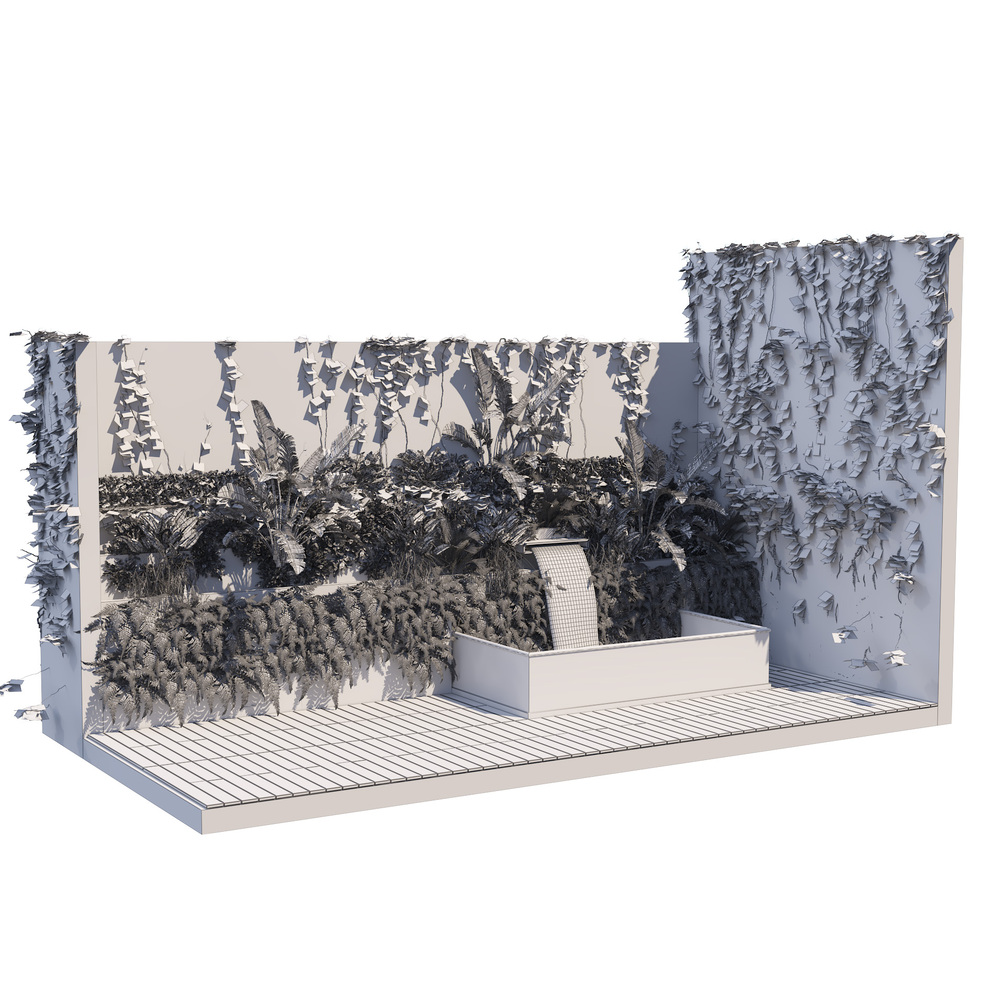 Highly detailed 3d model of outdoor green wall garden fountain, climbing plant, with all textures, shaders and materials. ready to use into your garden, yard, or landscape scene. with corona and vray engine renderer and material.