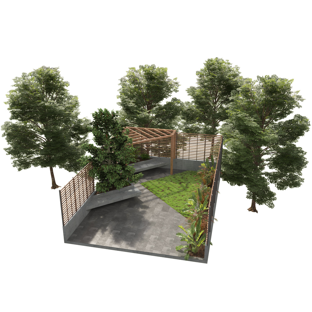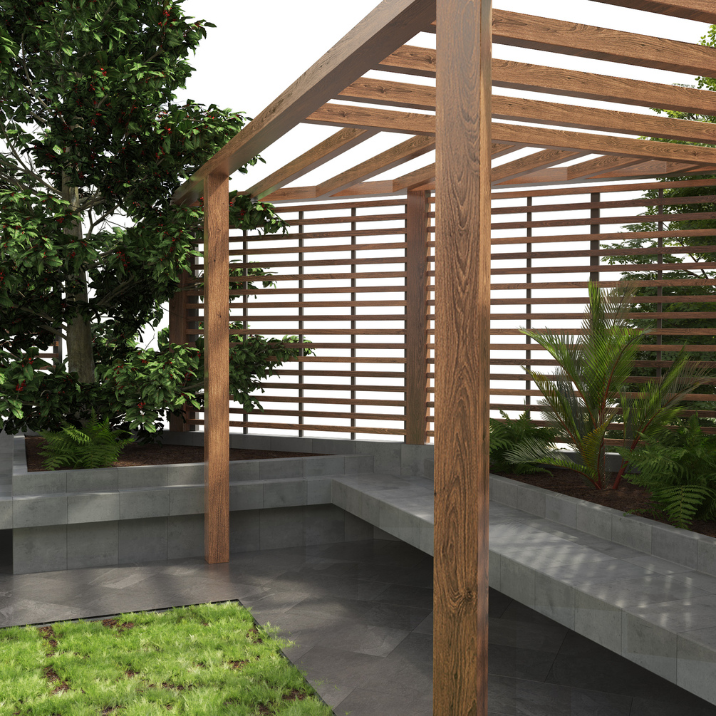 Highly detailed 3d model of pergola garden yard,