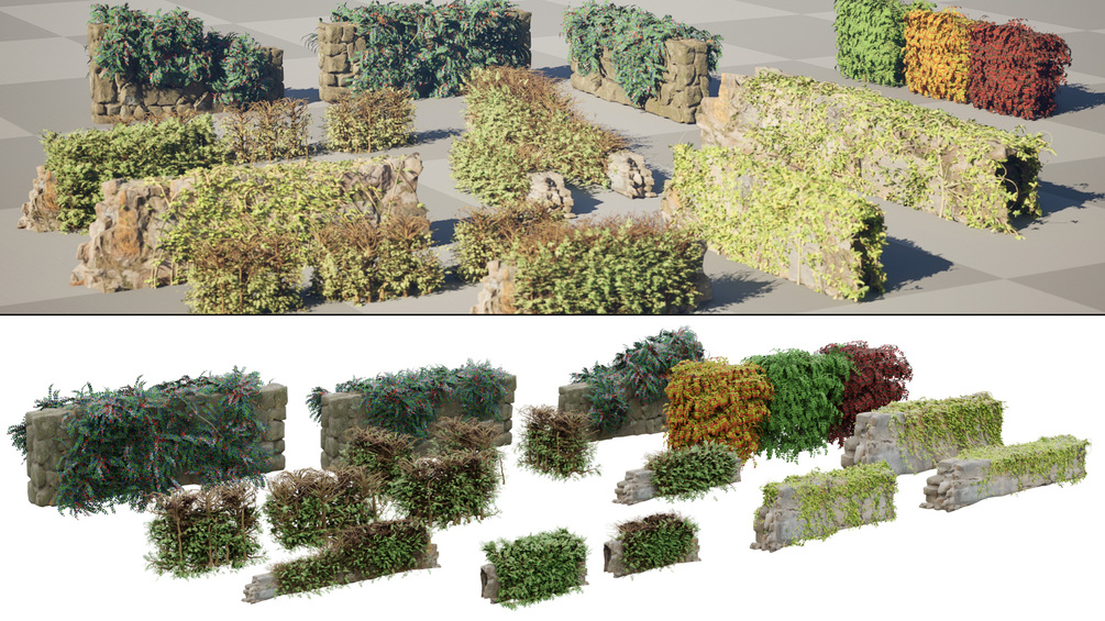 - Variety and Flexibility: The diverse range of assets allows you to create a wide array of hedgerow styles, from dense and manicured to wild and overgrown.