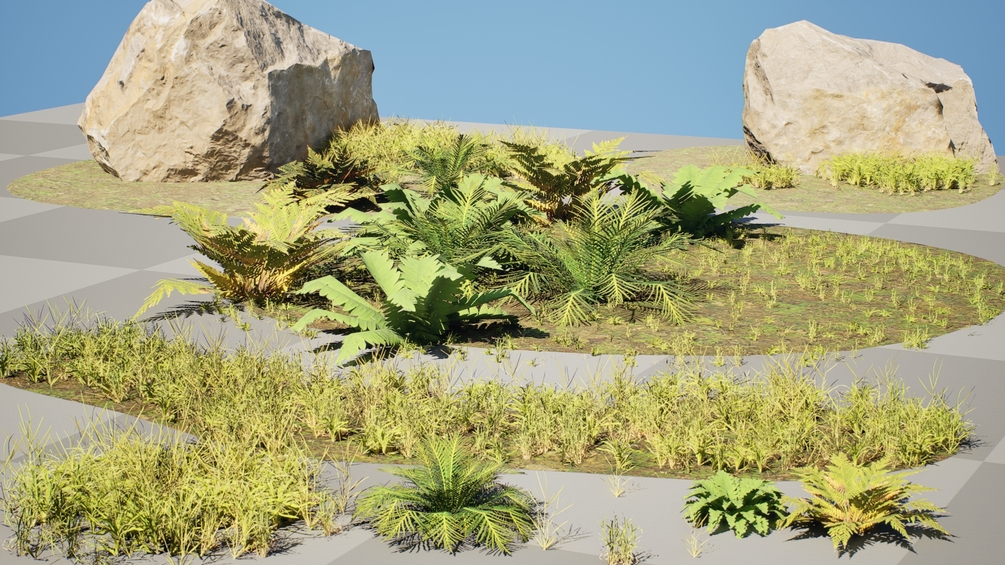 3D Nature Pack: Grass, Fern, Rocks, Palms, Meadow